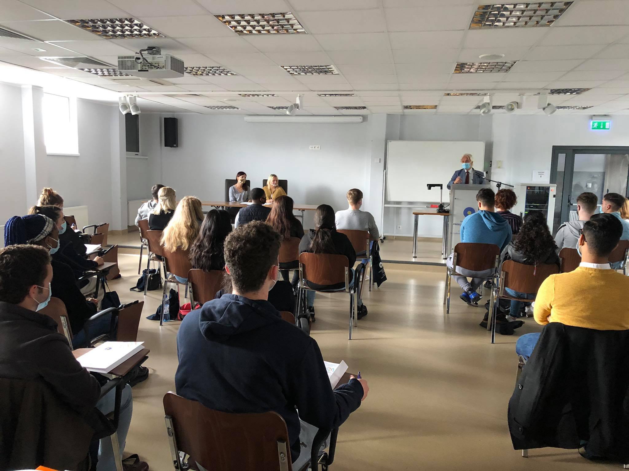 Meeting with 1st year students commencing their studies in the academic year 2020/2021, held on 1 October 2020 in Auditory room of Student House 3.